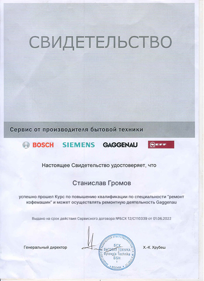 Должность: Технический эксперт по ремонту профессионального оборудования La Cimbali, Nuova Simonelli и WMF.